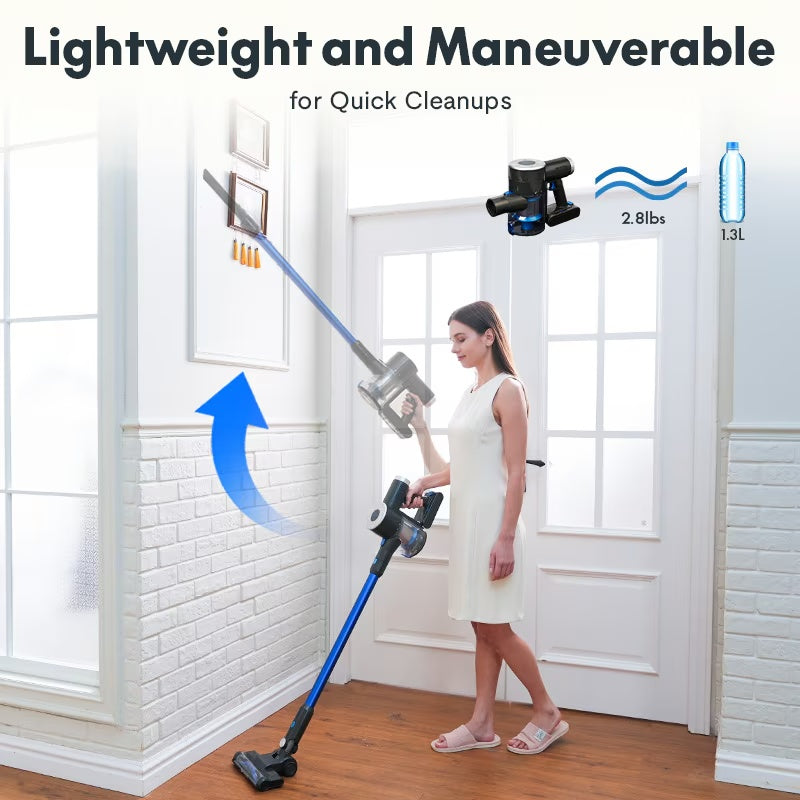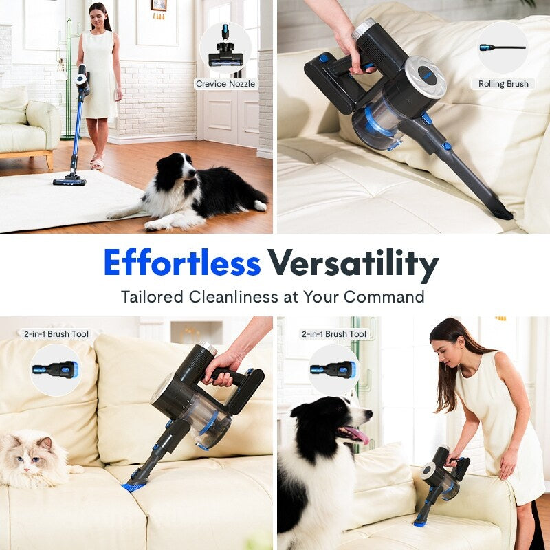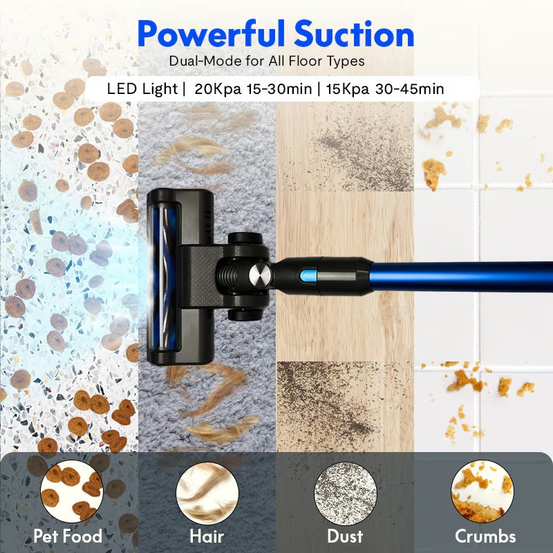 Multi-Functional Cleaning Feature: The vacuum cleaner is designed to handle a wide range of floor types, from hardwood to carpet, to provide consistent cleaning performance on different surfaces.